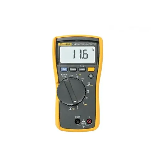 The Fluke 116 Digital HVAC Multimeter was specifically designed for HVAC professionals. It has everything you need to quickly troubleshoot problems with HVAC equipment and flame sensors, including a built-in thermometer to measure temperatures up to 400°C (752°F) and microamps to test flame sensors. The Fluke 116 also measures resistance, continuity, frequency, and capacitance. And the large white LED backlight makes it easy to see results even in poorly lit areas.