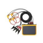- Measure all three voltage and current phases plus the neutral current: Three-phase and neutral voltage leads and four flexible current probes.
